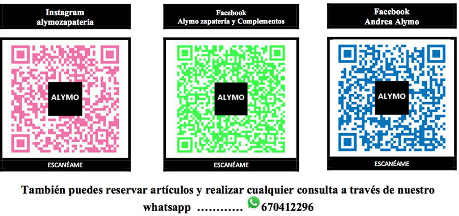 Escaneando cualquiera de nuestros codigos QR de nuestros perfiles de Instagram y Facebook sabrás todo lo que te interesa de nuestros productos. También están colocados en nuestros escaparates para que puedas ver los precios aunque tengamos el establecimiento en horario de cierre. También disponemos de ellos en el interior de nuestro establecimiento.