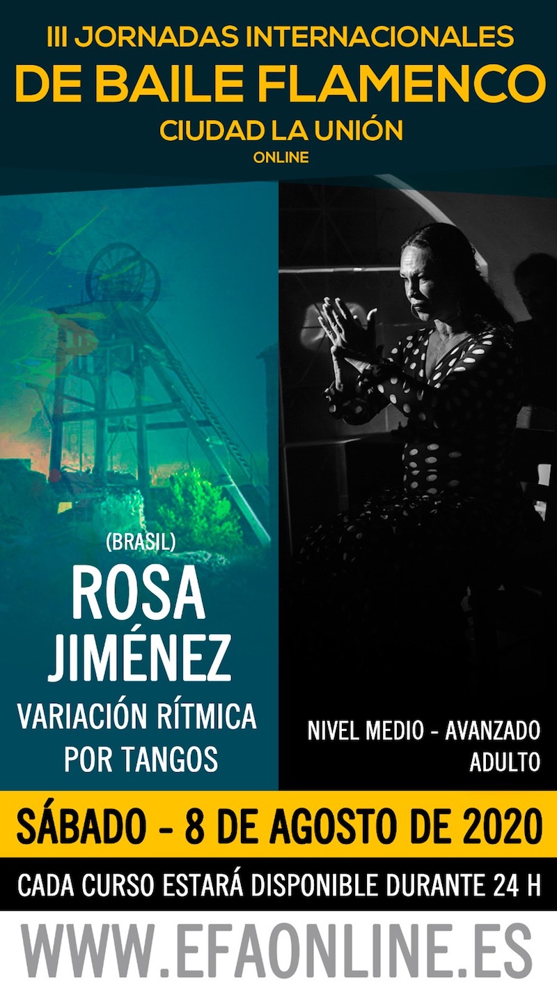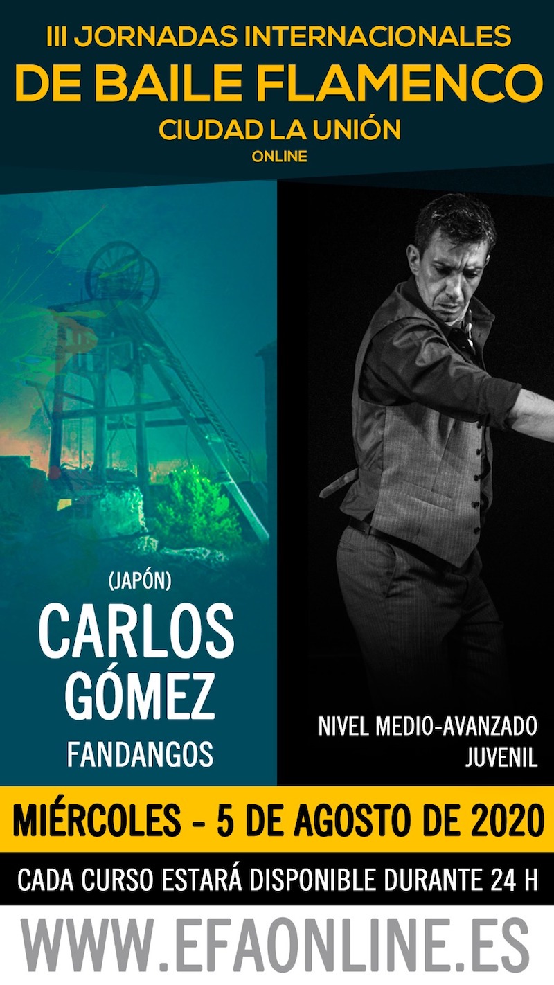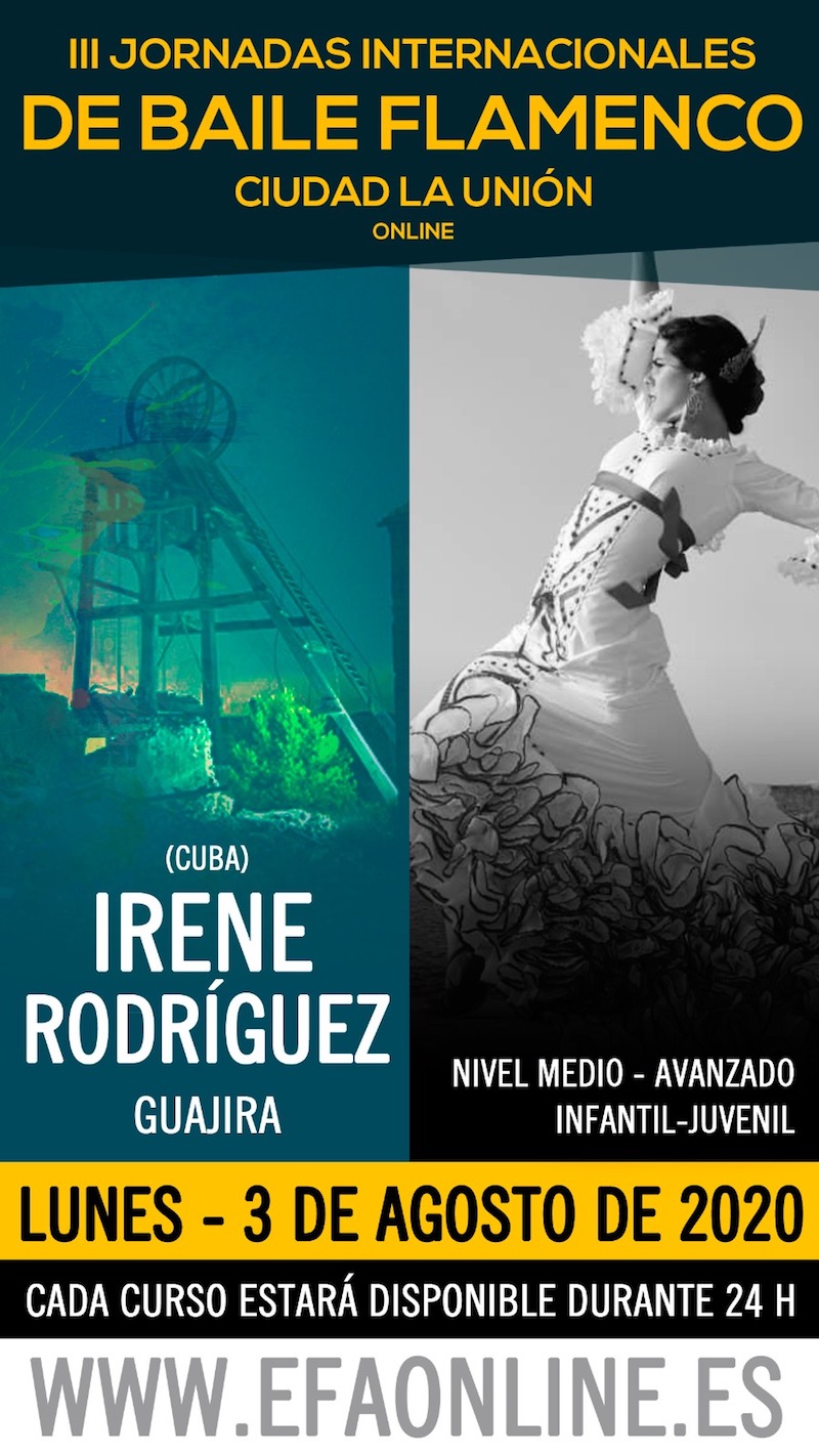 Organiza la Escuela ArteDanza, sede oficial de la Escuela de Flamenco de Andalucía en La Unión. Todos los cursos tendrán certificado oficial de la EFA. Las jornadas contarán con la participación de grandes profesores de la EFA de España, Cuba, Japón, Perú, Brasil y Australia. Tendrá lugar del 3 al 9 de agosto de forma telemática y cada curso estará dispone en internet sólo durante 24 horas.