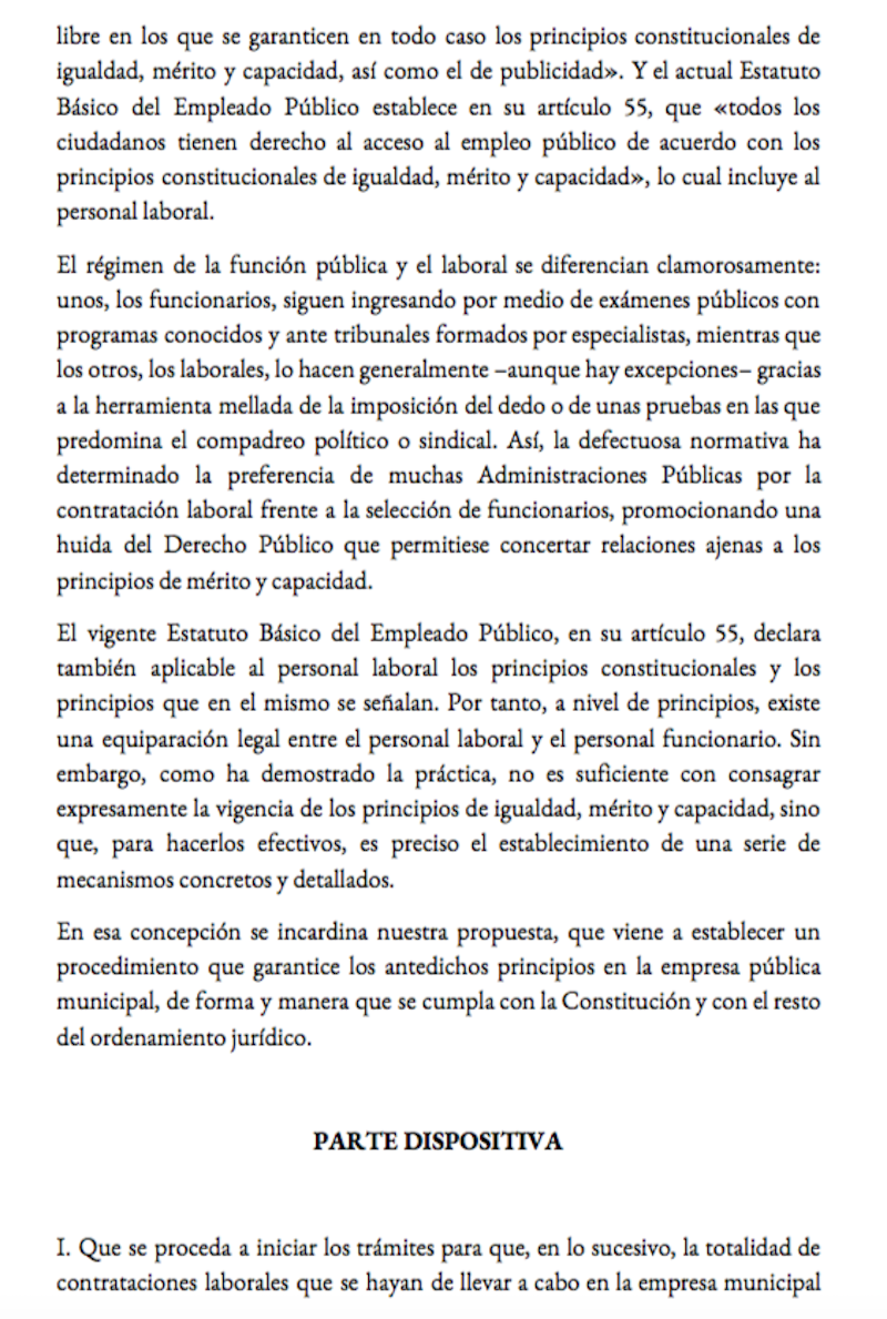 De esta forma todas las contrataciones de personal y servicios que se vayan a realizar en el futuro en la empresa municipal deberán pasar por un concurso de méritos previo, del que deberán establecer previamente las bases y el tribunal que evalúe los méritos, que estará compuesto por funcionarios de carrera libres e independientes, excluyendo la posibilidad de la participación de los cargos políticos en la contratación.