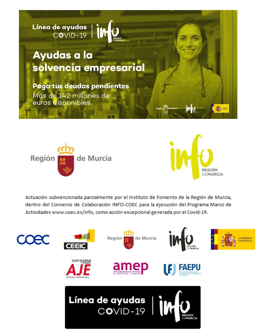No te pierdas la próxima Jornada de Ayudas a la solvencia empresarial organizada por COEC y CEEIC, donde los técnicos del Instituto de Fomento de la Región de Murcia (INFO) darán las claves para obtener esta línea de ayudas destinadas a paliar los efectos del COVID-19.