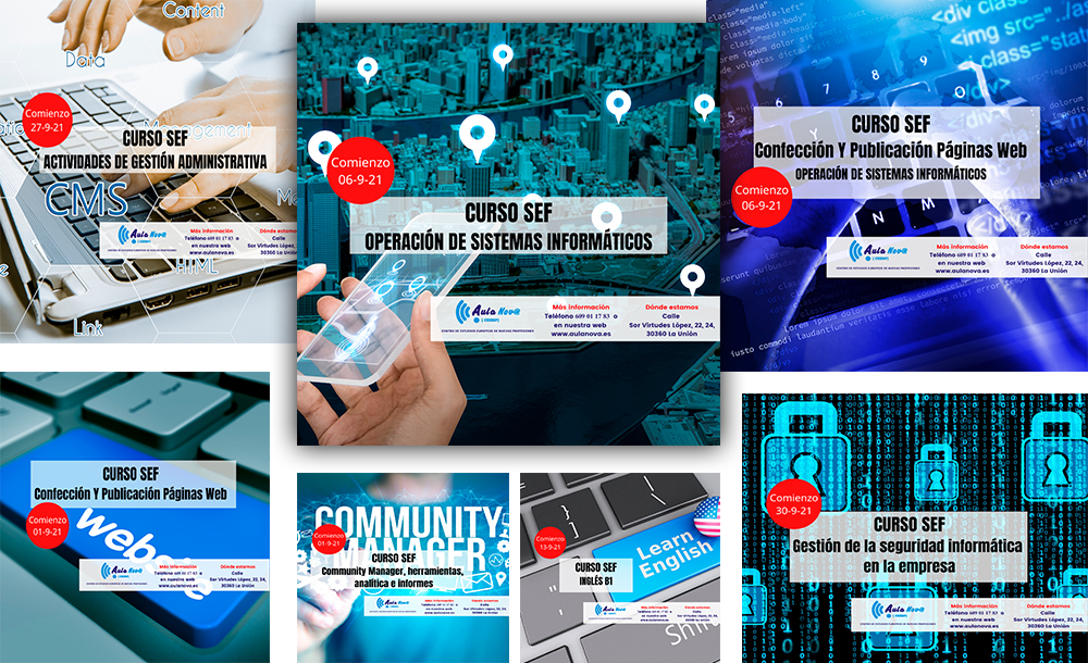 Tu academia de formación de La Unión te ha preparado siete atractivos cursos del SEF (Servicio de Empleo y Formación de la Región de Murcia) relacionados con la informática, inglés, gestión administrativa y seguridad informática, entre otras, que te ayudarán a encauzar tu futuro laboral. Comenzarán en septiembre, pero es bueno que te apuntes ya para tener segura tu plaza. Tu futuro se lo merece.