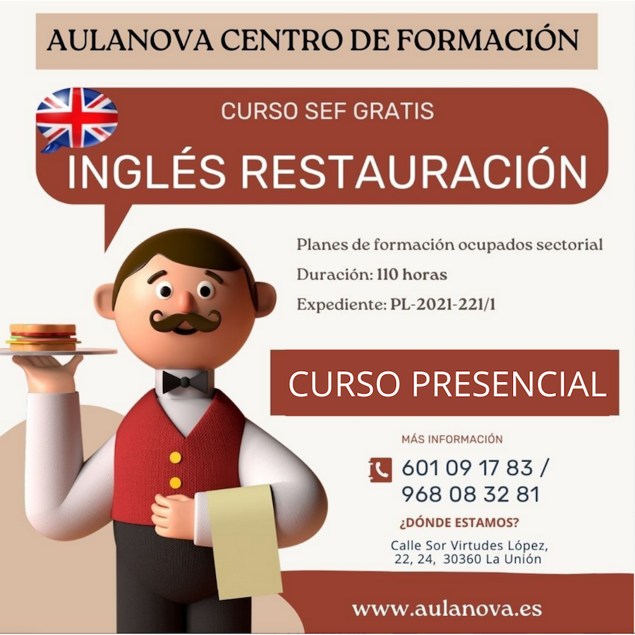 Apúntate a este curso gratis de 𝐈𝐍𝐆𝐋É𝐒 𝐑𝐄𝐒𝐓𝐀𝐔𝐑𝐀𝐂𝐈Ó𝐍