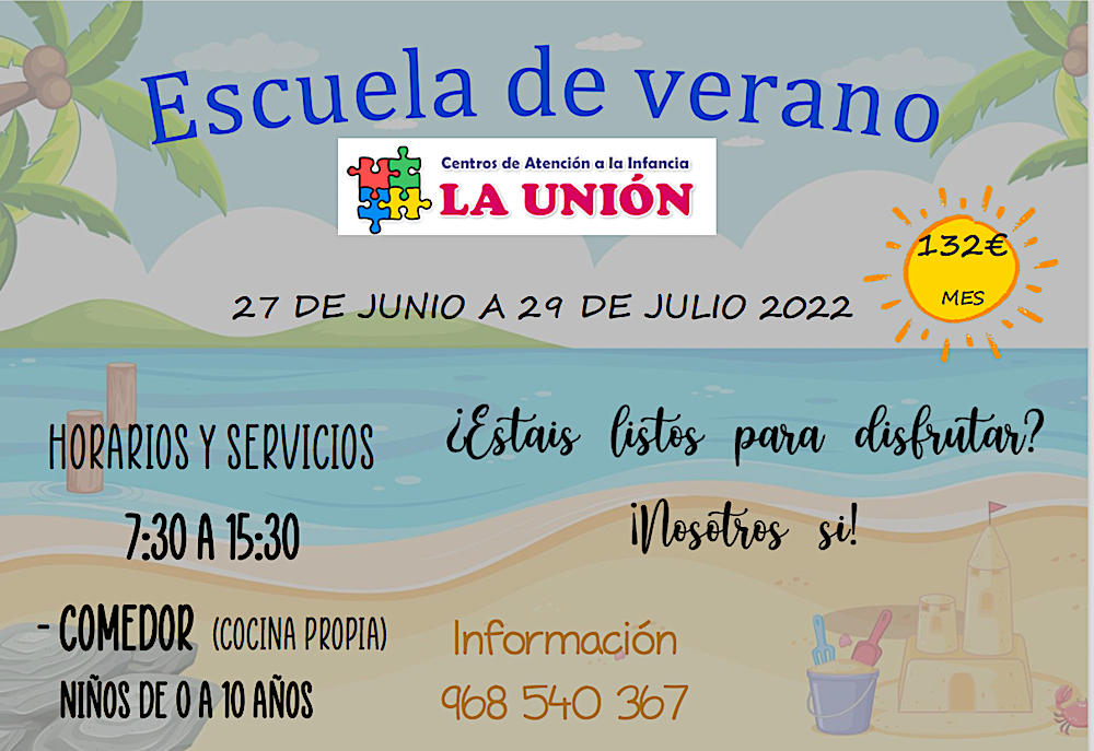 Dirigida a niños de hasta 10 años de edad. Comedor con cocina propia. Venir a disfrutar con nosotros a diario de 7.30 a 15.30 horas. ¿Quiéres saber más o te ha surgido alguna duda? Llámanos al teléfono 968 54 03 67. Estaremos encantados de responderte.