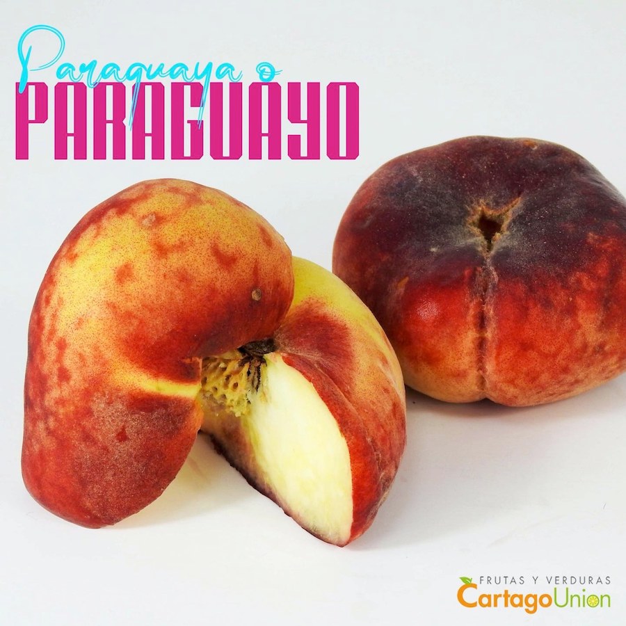 El paraguayo es una fruta saludable al estar compuesta en gran parte de agua y antioxidantes. Lo conocemos como una mutación del melocotón por su fisionomía achatada y tan peculiar. Su sabor es dulce, refrescante y muy jugoso.