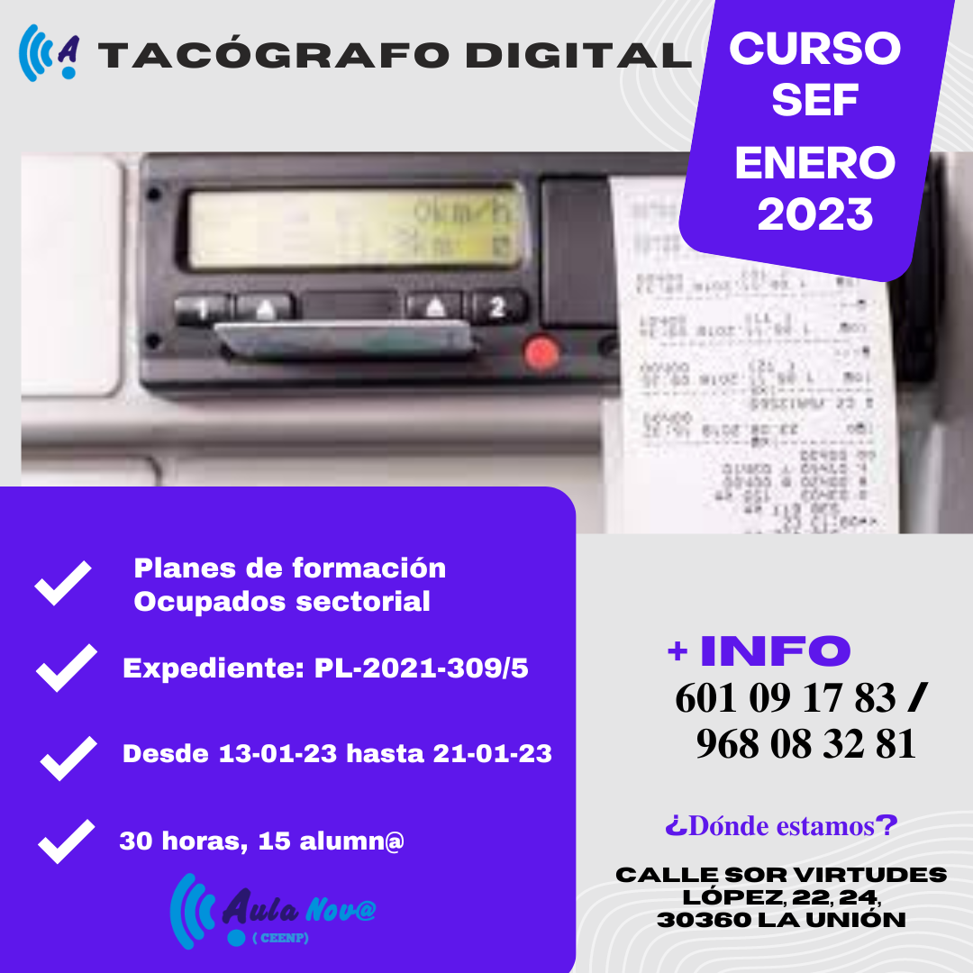 ‘Tacógrafo digital’ es el curso de formación que Aula Nova te ofrece, totalmente gratis para ti, a partir de enero. Si eres conductor, es la gran oportunidad de mejorar tu futuro profesional. El tope es de 15 plazas y durará 30 horas.