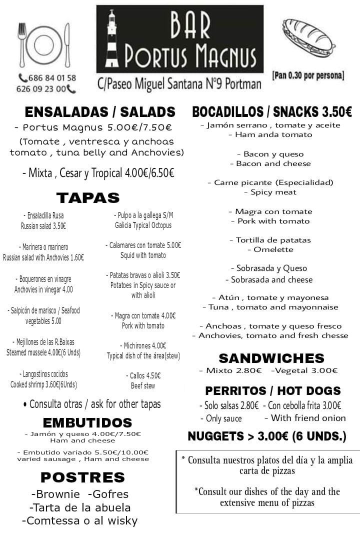 Portus Magnus Bar es un establecimiento hostelero ubicado en un privilegiado lugar con una amplia terraza y un ambiente familiar. Estamos en el número 9 del paseo Miguel Santana de Portmán - Teléfono 626 09 23 00