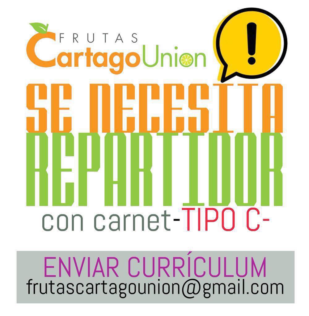 La frutería de La Unión convoca a los aspirantes a cubrir este puesto de trabajo, para el que se necesita carné de conducir tipo C. Enviar currículum al correo electrónico Esta dirección de correo electrónico está siendo protegida contra los robots de spam. Necesita tener JavaScript habilitado para poder verlo.