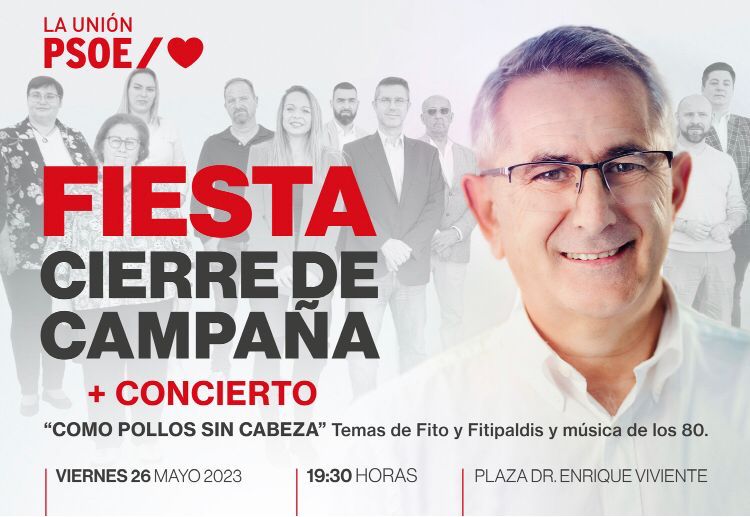 19.30 horas. Fiesta de cierre de campaña a las 19.30 horas en la plaza Doctor Enrique Viviente. Actuará la banda ‘Como pollos sin cabeza’.