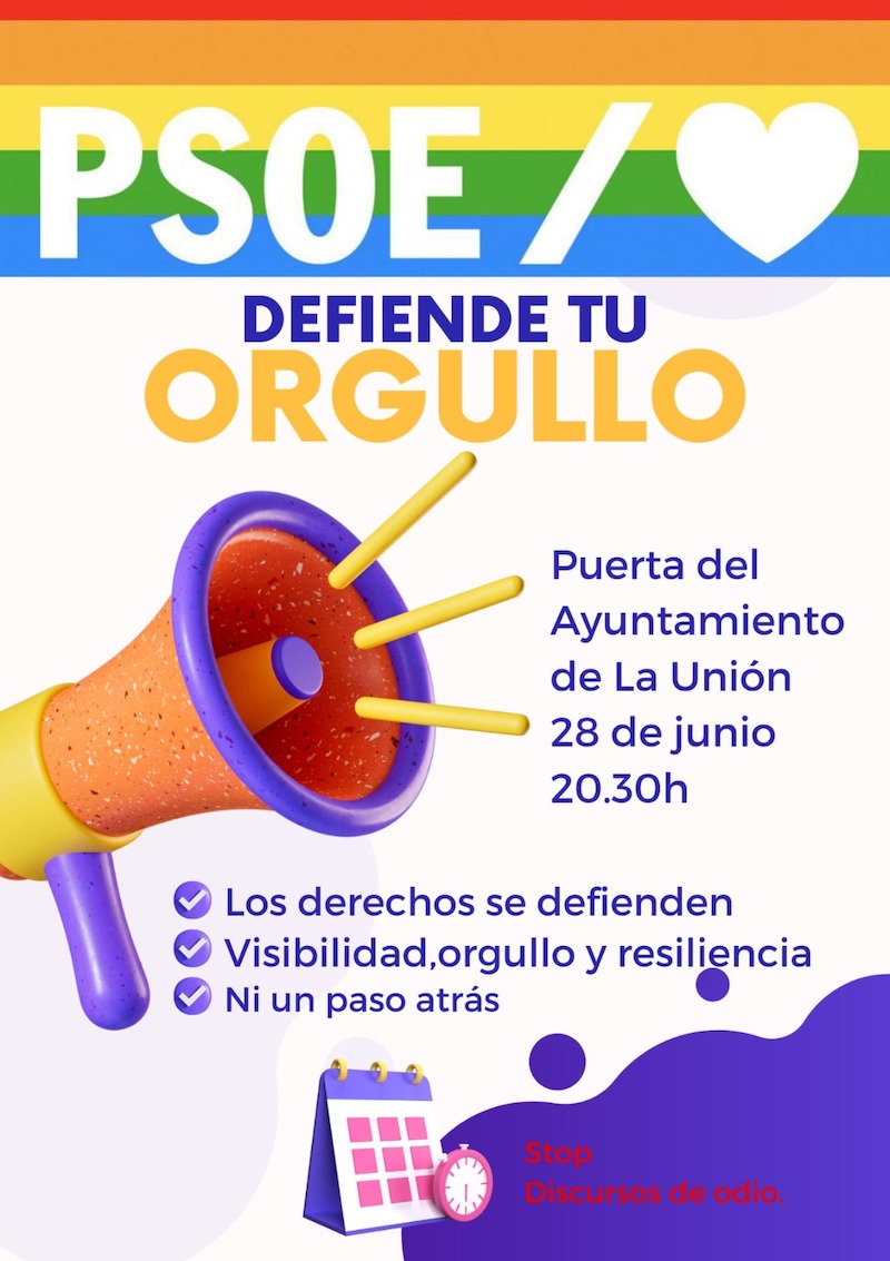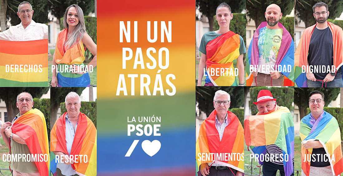 Por todo ello, desde el PSOE animamos a todos nuestros militantes y simpatizantes, y a todas las personas que sienten orgullo de vivir en uno de los países del mundo que más respetan los derechos de las personas LGTBI, a unirse a los actos del Orgullo. A defender y reivindicar que no estamos dispuestos a retroceder ni un milímetro a un pasado gris y reaccionario, sino a seguir avanzando con paso firme hacia el futuro.