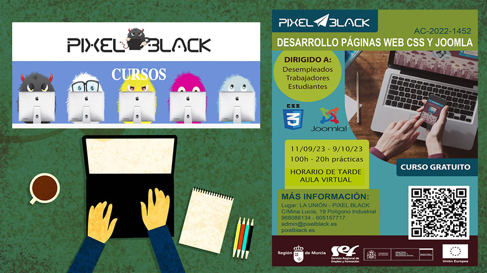 Dirigido a desempleados, trabajadores y estudiantes, se desarrollará del 11 de septiembre al 8 de octubre con 100 horas teóricas y 20 de prácticas. Plazas limitadas. No te confíes y apúntate ya. Más informació en Pixel Black de La Unión en el polígono industrial de Lo Bolarín y en los teléfonos 968 088 134 y 605 157 717.