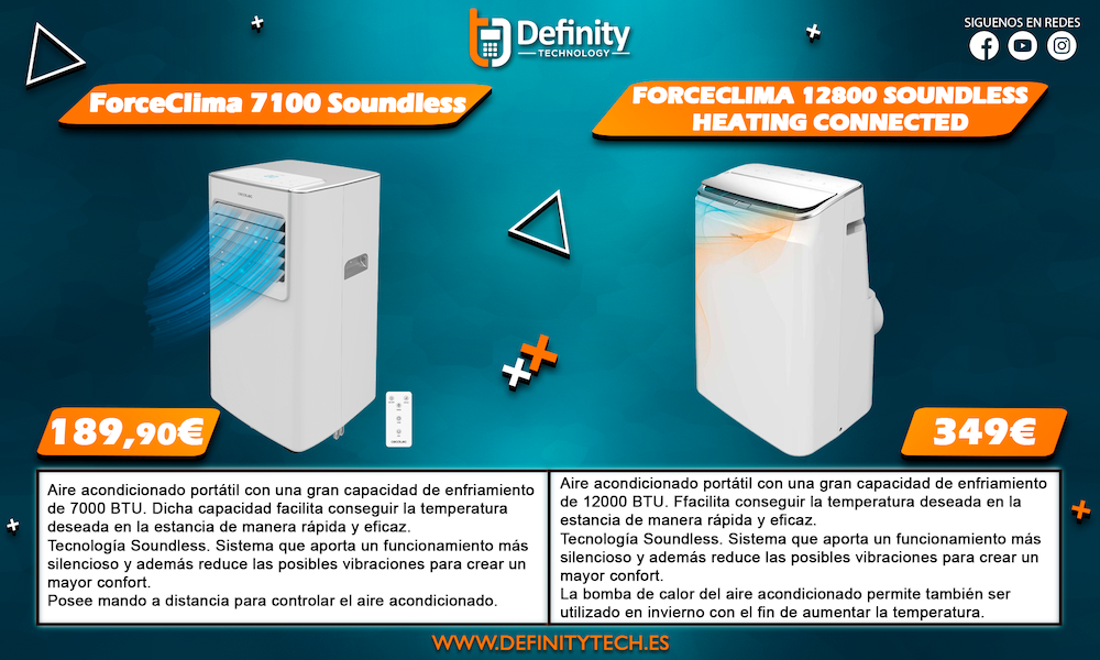 Definity Techonology te hace dos propuestas a un precio inmejorable para que puedas aliviar las altas temperaturas de este verano en tu hogar o centro de trabajo. La oferta sólo es para esta semana. Más información en www.definitytech.es y en establecimiento de la calle Mayor de La Unión.