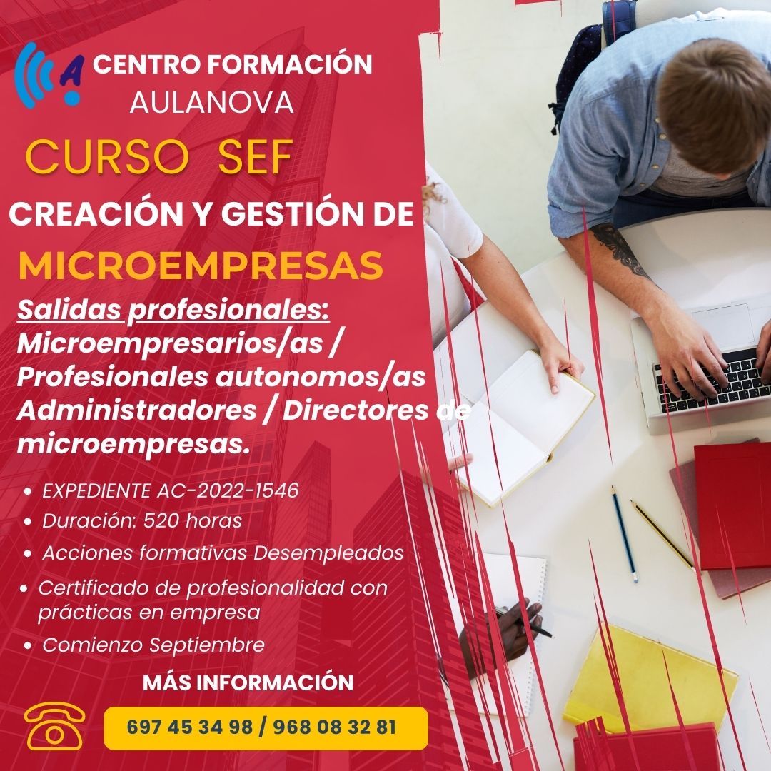 𝗘𝗹 𝗖𝘂𝗿𝘀𝗼 𝗱𝗲 𝗖𝗿𝗲𝗮𝗰𝗶𝗼́𝗻 𝘆 𝗚𝗲𝘀𝘁𝗶𝗼́𝗻 𝗱𝗲 𝗠𝗶𝗰𝗿𝗼𝗲𝗺𝗽𝗿𝗲𝘀𝗮𝘀 del SEF es la oportunidad que estabas esperando! Con una duración de 520 horas y la posibilidad de obtener un Certificado de Profesionalidad, este curso te brinda las herramientas esenciales para convertirte en un exitoso microempresario o profesional autónomo.