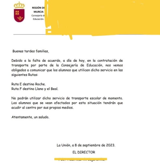 "Desde Defiende La Unión hemos visto esta semana al señor Joaquín Zapata reivindicar en Madrid la regeneración de la bahía de Portmán, cosa que vemos bien y apoyamos. Ahora le toca luchar contra los suyos. Queremos que vaya a la Consejería de Educación y pelee con el mismo ímpetu en la problemática que hay en nuestro municipio y pedanías con el transporte escolar. Un transporte que para todo los alumnos y padres es primordial, y que para las personas con discapacidad es un mundo.