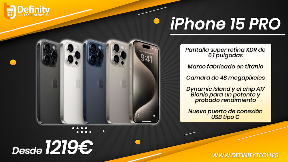 Definity Tecnology te facilita que puedas tener un terminal de la nueva familia de móviles de Apple con diseño de titanio de calidad aeroespacial y una amplia serie de novedades y ventajas que lo sitúan en un nivel superior de su sector.