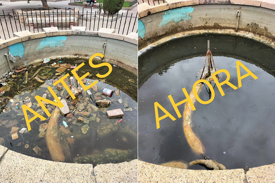DLU gestiona la limpieza de la fuente de la plaza Enrique Viviente