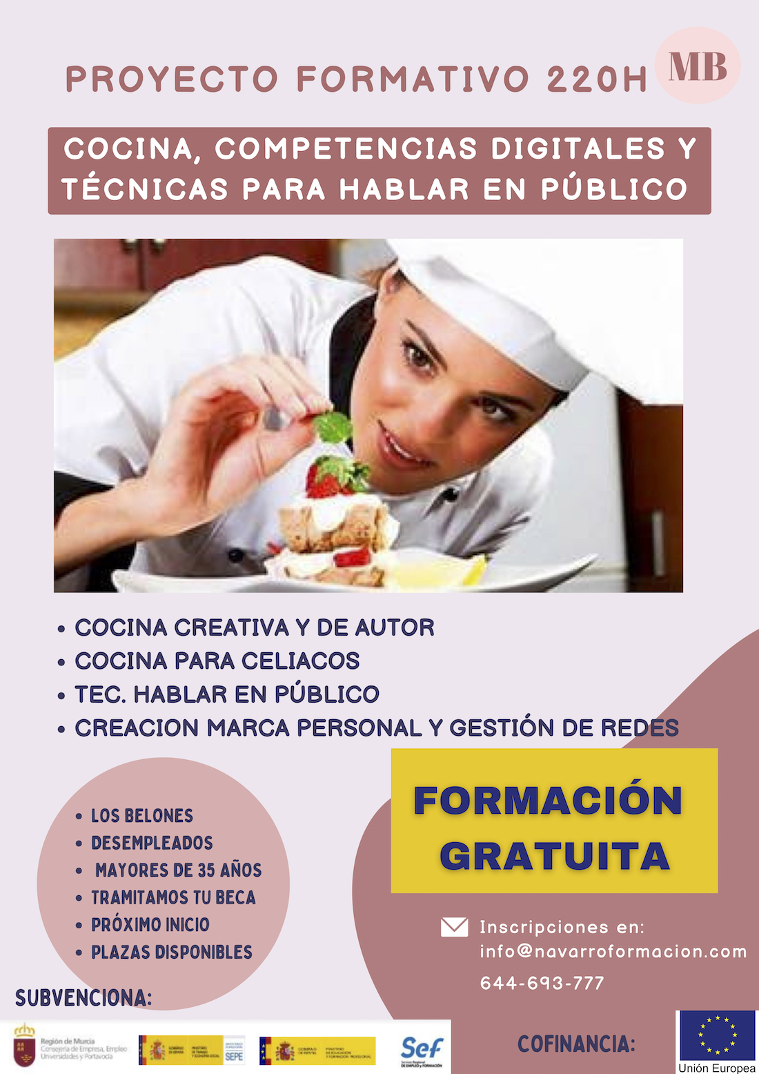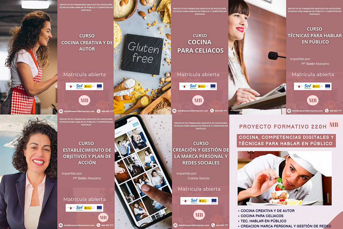 Proyecto Formativo se desarrolla en 220 horas y es totalmente gratuito. Consta de cocina (creativa, de autor y para celiacos), de técnicas para hablar en público, de establecimiento de objetivos profesionales con plan de acción y creación y gestión de la marca personal, además del uso de redes sociales en la búsqueda de empleo. El curso SEF comenzará en noviembre.