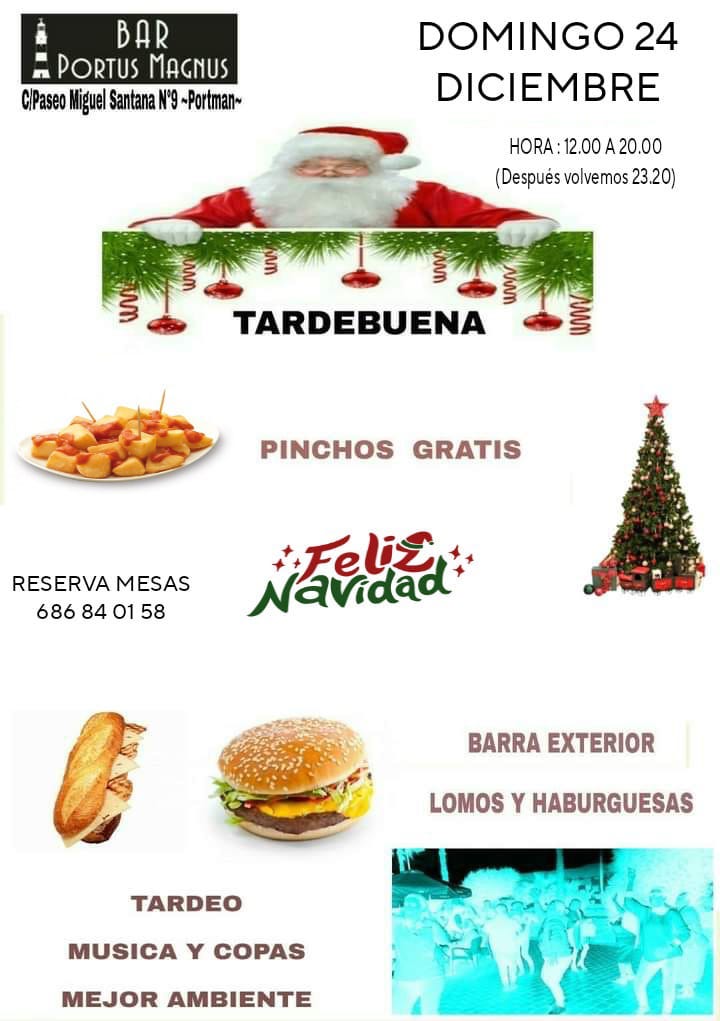 Bar Portus Magnus ha preparado una jornada para vivirla a tope desde las doce de la mañana con música, barra exterior, pinchos gratis, copas... y un estupendo ambiente. Reserva mesas para disfrutarla mejor. Teléfono 686 84 01 58. Además, la fiesta seguirá después de las once y veinte de la noche.