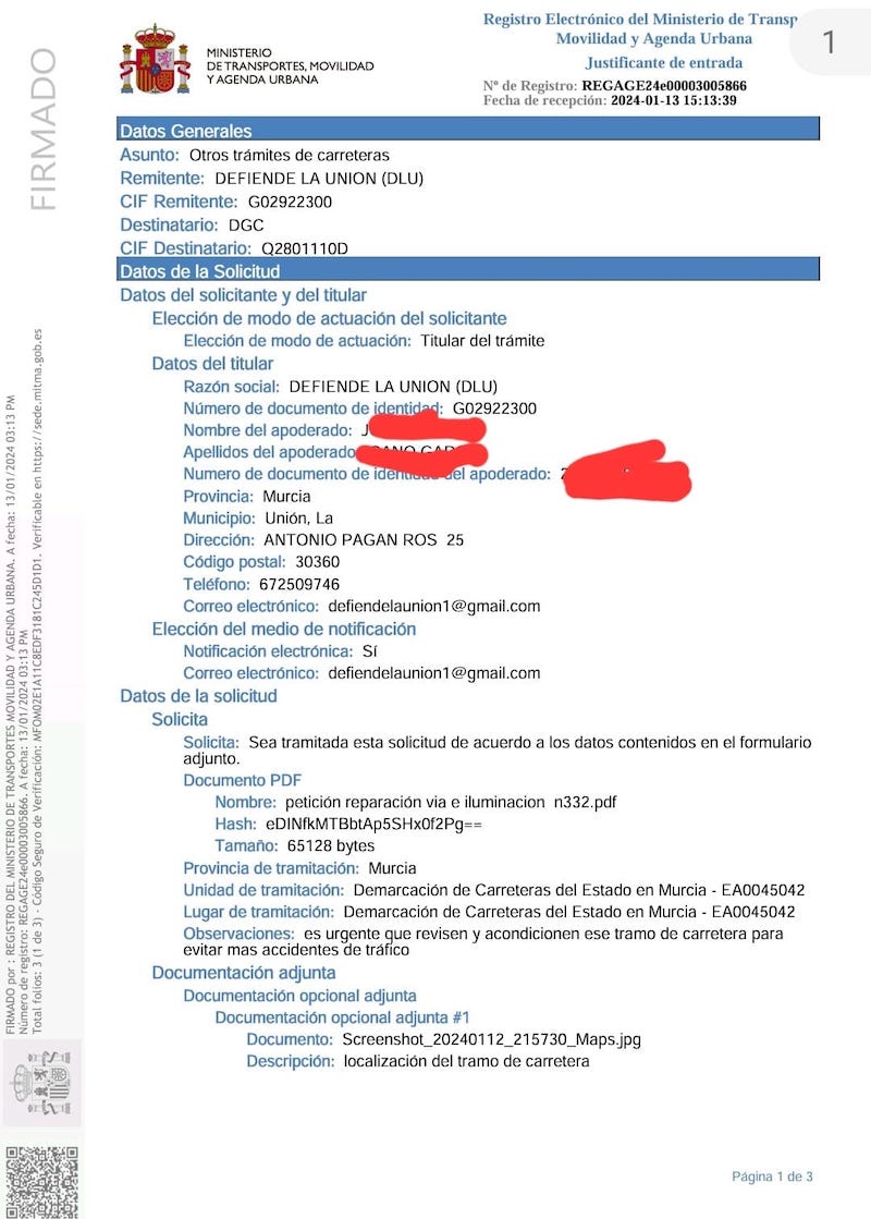 Desde DLU también se aclara que ese 'pnto negro' no se encuentra dentro del municipio de La Unión, "pero es una carretera muy transitada por nuestros vecinos a diario y nuestro deber es mirar por la seguridad de todos", indican desde la formación que preside Daniel Cano. "Esperemos que esta petición sea escuchada y tramitada lo antes posible para la seguridad de los que circulamos diariamente por ella".