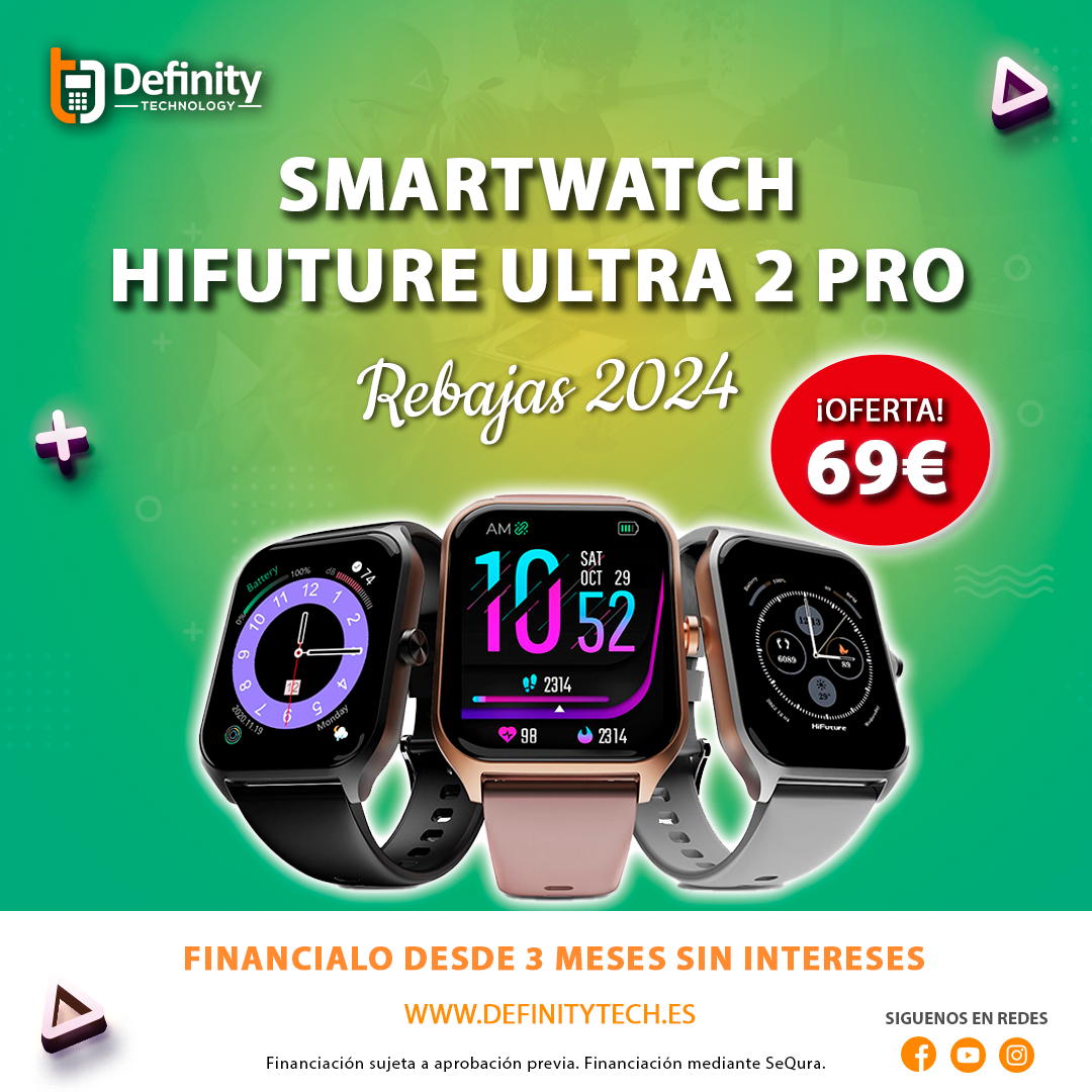 Relojes inteligentes Smartwatch Hifuturepor precios increíbles de 79 y 69 euros. Ven a nuestra tienda física de la calle Mayor de La Unión y aprovecha esta promoción limitada. También puedes entrar en www.definitytech.es para recibir más información y comprar.