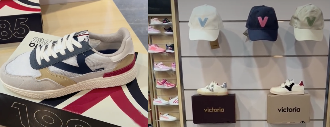 Es calzado ‘casual’ para salir y alternar, no para hacer deporte. También tenemos, como complemento, gorras con la ‘V’.