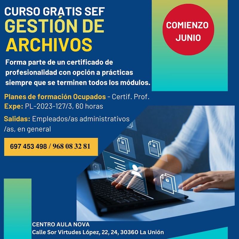 ¡Atención!, Aula Nova os trae el 'curso gratuito' de Gestión de Archivos. Forma parte de certificado de profesionalidad con opción a prácticas siempre que se terminen todos los módulos. Conseguirás dominio enla gestión documental y habilidades técnicas en demanda.