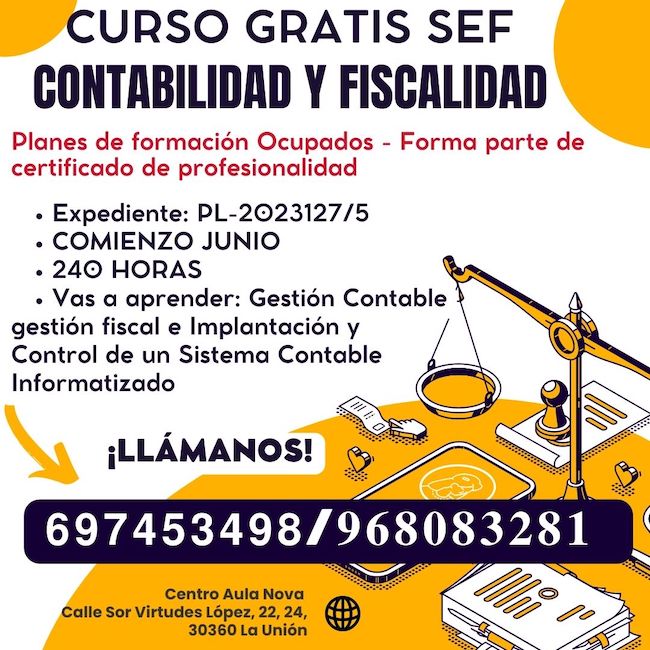 No te pierdas el curso de contabilidad y fiscalidad que te ofrece Aula Nova