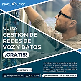 La academia de formación Pixel Black oferta un nuevo curso del SEF (Servicio de Empleo y Formación de la Región de Murcia) dirigido tanto a desempleados como trabajadores en activo, siendo el tope de plazas de 15. Se impartirá en las instalaciones del polígono industrial de Lo Bolarín de La Unión, de lunes a viernes de 16 a 21 horas, constando de 530 horas teóricos y 80 de prácticas en empresa.