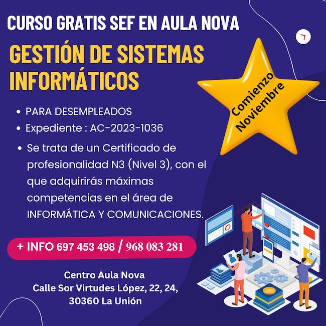 ¡No dejes pasar esta oportunidad de convertirte en un experto/a en el sector de la informática con AULA NOVA!