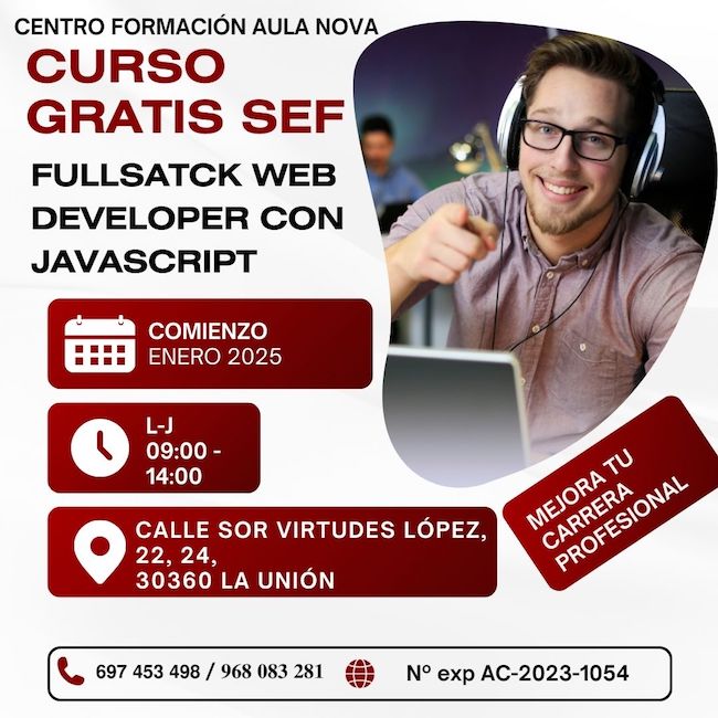 Desde Aula Nova, te presentamos una acción formativa ideal para comenzar el 2025 con el pie derecho. Esta formación te permitirá mejorar tus habilidades, crecer profesionalmente y abrirte a nuevas oportunidades laborales. Incluida en el Plan ReActiva del SEF (Servicio de Empleo y Formación), está dirigida tanto a personas desempleadas como a trabajadores que deseen ampliar sus competencias en el área de 'Informática y Comunicaciones'. Se impartirá en el colegio Sabina Mora.