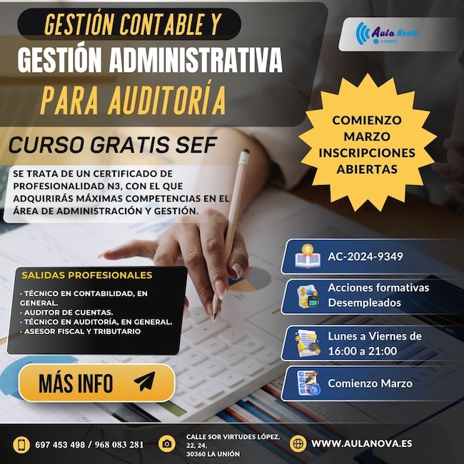 Nuevo curso gratuito: 'Gestión contable y gestión administrativa para auditoría'