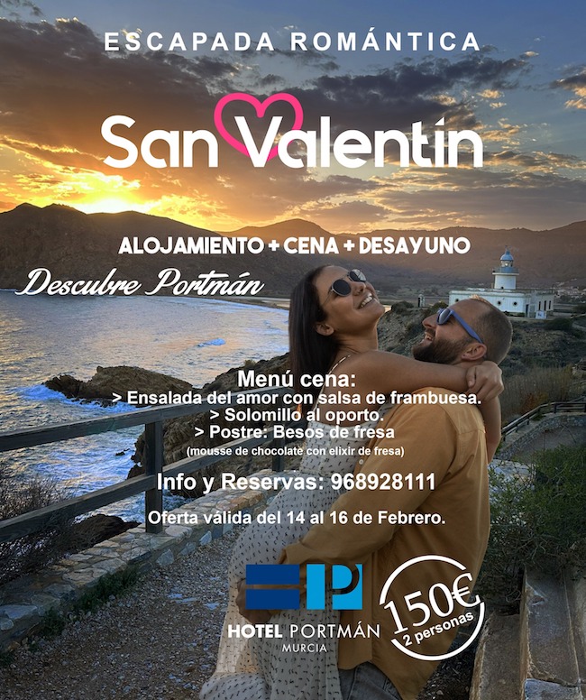 Hotel Portmán te propone una escapada romántica a un lugar con encanto y numerosos lugares a visitar, con alojamiento, cena y desayuno en nuestra instalaciones por sólo 150 euros por pareja. Oferta válida del 14 al 16 de febrero. Más información y reservas en el teléfono 968 928 111.