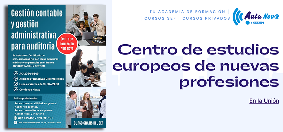 Desde Aula Nova queremos presentarte una nueva acción formativa diseñada para impulsar tu desarrollo profesional y ampliar tus opciones de inserción laboral. No esperes y apúntate ya. Plazas limitadas.
