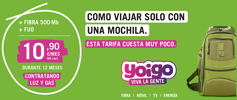Otra tarifa que cuesta muy poco. Fibra de 500 Mb más teléfono fijo por sólo 10,90 euros al mes durante un año contratando también luz y agua. Más información en el teléfono 622 661 157 o pasando por nuestra tienda física de la calle Mayor de La Unión.