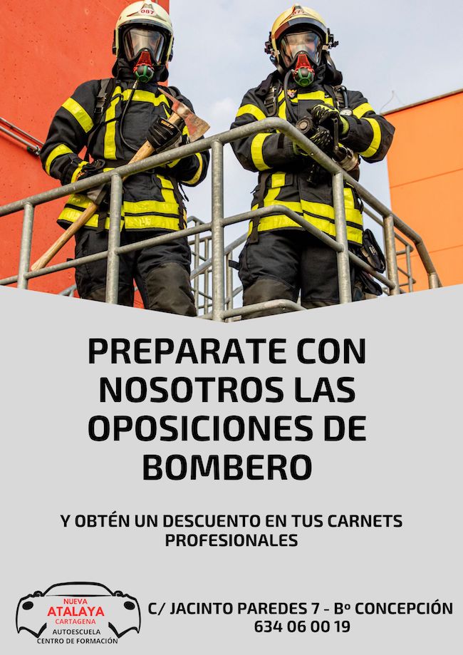 Nueva Atalaya te prepara para las oposiciones del servicio público de extinción de incendios y, además, te practica descuentos en tus carnés profesionales que obtengas a través de su autoescuela.