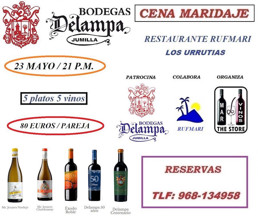 La noche del próximo viernes será la siguiente cita de las veladas que combinan gastronomía con exquisitos vinos en el restaurante Ruf-Mari, siendo la bodega Mar de Vinos la organizadora. En esta ocasión, Bodegas Delampa de Jumilla aportará cinco de sus caldos (entre los que figuran los dos que han recibido la 'Medalla de oro') para acompañar los platos. El precio es de 80 euros por pareja.