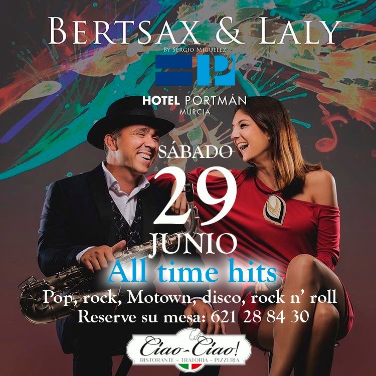 BertSax y Laly, a través del saxo y de las voz, ofrecerán este 29 de junio la mejor música grandes éxitos de nuestra vida. Reserva tu mesa en el teléfono 621 28 84 30: pinchar aquí
