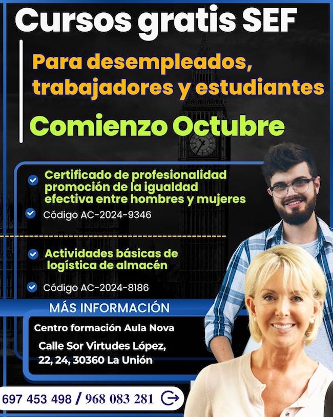 🕒 L-V 9:00 a 14:00 | 📅 Octubre | 📍 Aula Nova, C/ Sor Virtudes López, 22 (La Unión)