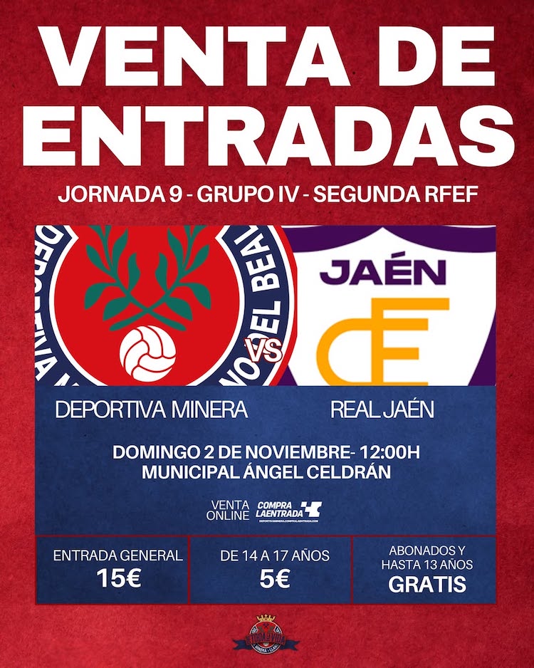El Llano del Beal se prepara para la visita de otro club referencia a nivel nacional. Su historia y su masa social convierten al Real Jaén CF en otro de los grandes referentes que tiene esta temporada el Grupo IV de Segunda RFEF. Su condición de recién ascendido ni mucho menos les quita el peso que se han ganado a lo largo de muchos años de fútbol en La Victoria. El cuadro jienense visita este domingo, a partir de las 12:00h, el Coliseo Ángel Celdrán para medirse a una Deportiva Minera que llega con ganas de resarcirse tras la derrota de la semana pasada ante otro histórico como es el Xerez CD.