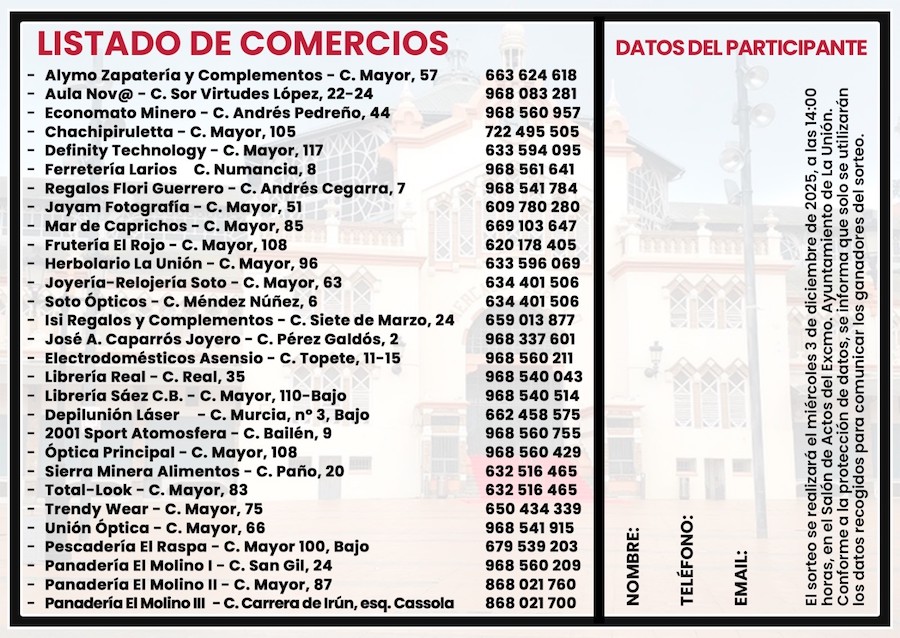 El objetivo de esta iniciativa es fomentar el consumo en los establecimientos del municipio, premiando la fidelidad de los clientes con atractivos sorteos y fortaleciendo así el tejido comercial de La Unión.