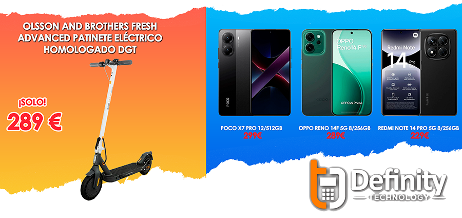 … un buen patinete eléctrico homologado por la Dirección General de Tráfico por sólo 289 euros y tres estupendos terminales móviles por precios que van entre 229 y 299 euros. Aprovecha estas ofertas.