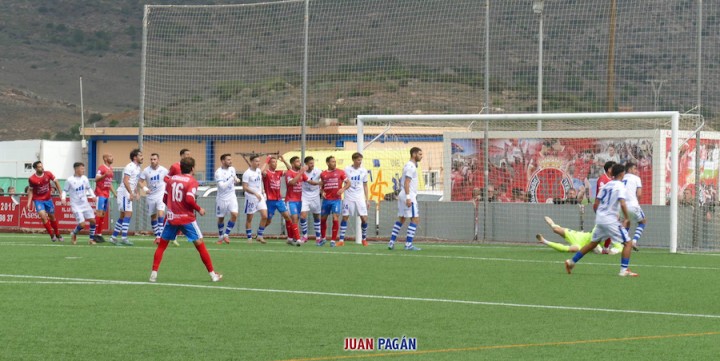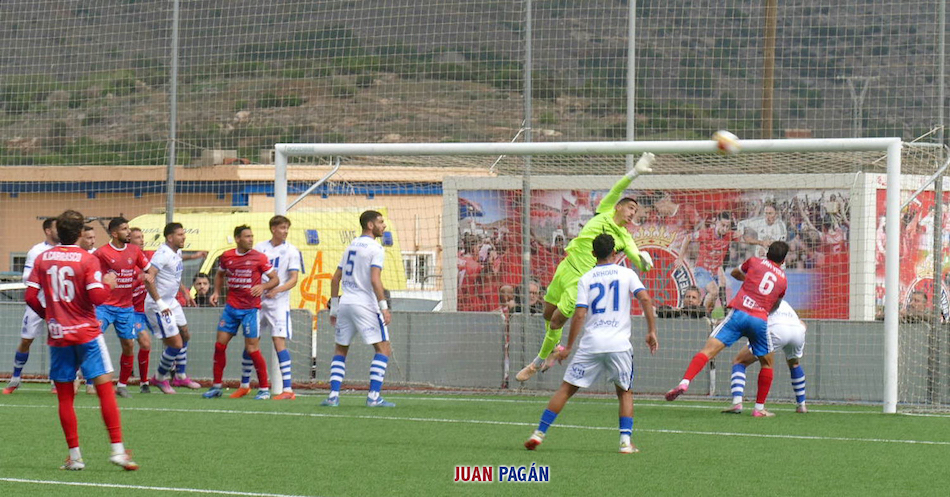 GOLES. 0-1. Minuto 48: El balón entra por la escuadra local tras chut de Barace (foto sobre estas líneas). 1-1. Minuto 58: Omar Perdomo de córner directo. 2-1. Minuto 78: Omar Perdomo, tras pase de Rubén Mesa. 2-2. Minuto 84: Juanmi Castejón de penalti.