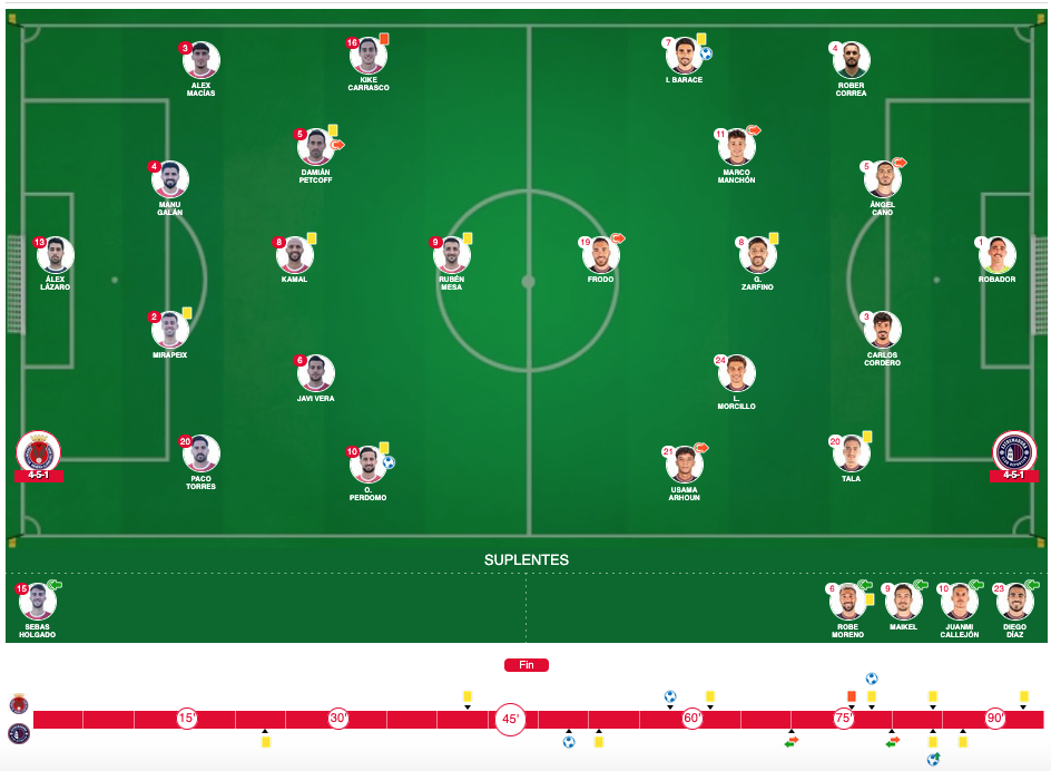 Cuando las aguas parecía que iban en favor de la Deportiva Minera, con un partido que se volcaba hacia portería visitante, nuevo golpe. Esta vez en forma de expulsión. El espectacular partido de Kike Carrasco llegaba a su fin a dieciséis minutos del final tras ver una roja directa muy protestada por los locales. Ese nuevo revés no suponía un bajón para la Minera, sino todo lo contrario. Los de Checa se volvían a espolear para buscar la épica.