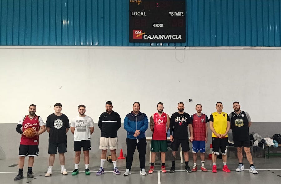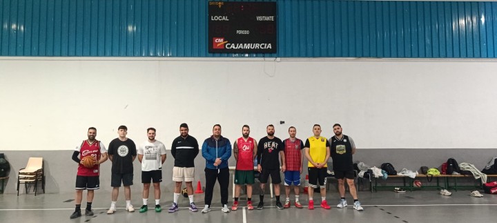 El edil Daniel Cano, durante la visita que efectuó a la instalación, posa con jugadores de la liga local