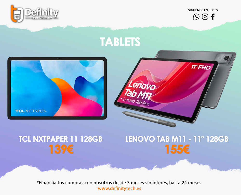 ... que adquieras tablets a precios tan rebajados como los que ha fijado en los dos modelos que se observan en la imagen adjunta. Puedes recabar más información o adquirirlos a través de nuestra tienda física de la calle Mayor de La Unión y del portal www.definitytech.es
