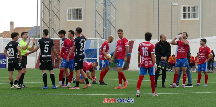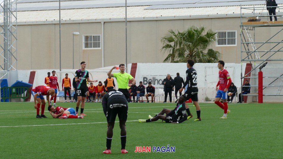 No habían transcurrido ni cuatro minutos de partido cuando los del Llano del Beal se llevaban el primer jarro de agua fría. Casi sin entender muy bien cómo, los malagueños abrían el marcador en la primera acción de peligro del encuentro. La reacción rojilla fue de levantarse con firmeza rápidamente ante ese golpe al mentón nada más arrancar.