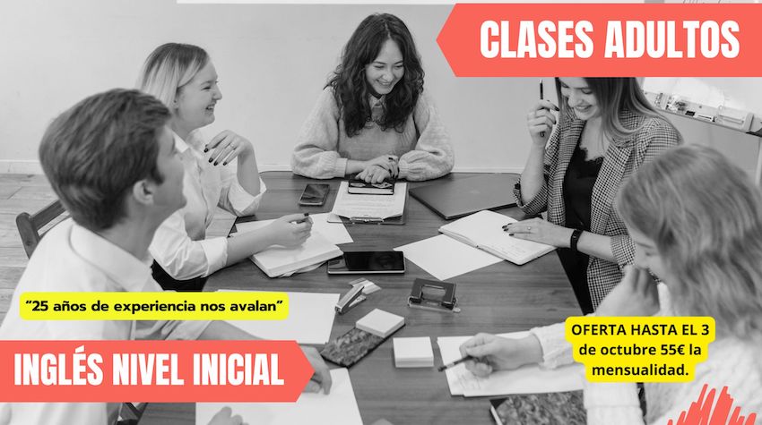 El centro de fomración anuncia del próximo inicio de las clases (2 horas de duración) para adultos y del idioma inglés (nivel inicial), con oferta de 55 euros la mensualidad hasta el 3 de octubre. ¿Necesitas el inglés en tu trabajo?, ¿buscas nuevas oportunidades laborales?, ¿quieres viajar? o ¿te gustaría entender tus canciones favoritas? ¡Apúntate ya y comienza a hablar con fluidez! El momento de empezar es ahora.