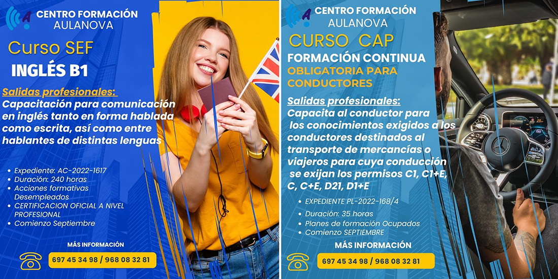 La academia de formación de La Unión te ayuda a tu futuro laboral con cursos gratuitos SEF, como son los de Inglés B1y de CAP formación continua para conductores que comienzan este mes.