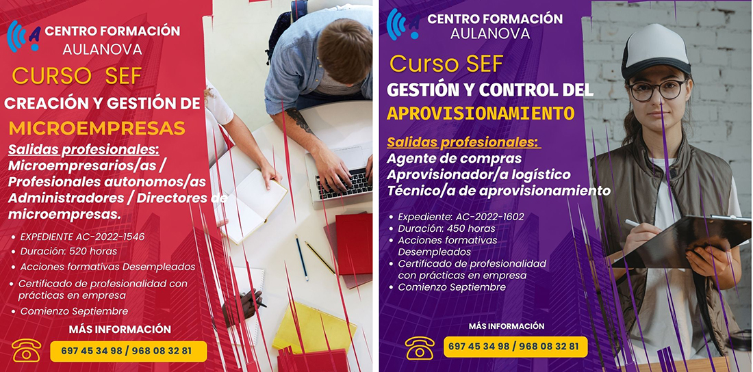 ¿Has soñado alguna vez con ser tu propio jefe y emprender tu propio negocio? Apúntate ya en nuestro curso SEF de creación y gestión de microempresas que se desarrollará en el colegio Sabina Mora. Otra opción para tu futuro la puede tener a través de otro curso SEF: 'Gestión y control del aprovisionamiento'. Comienza este mes y son gratuitos.