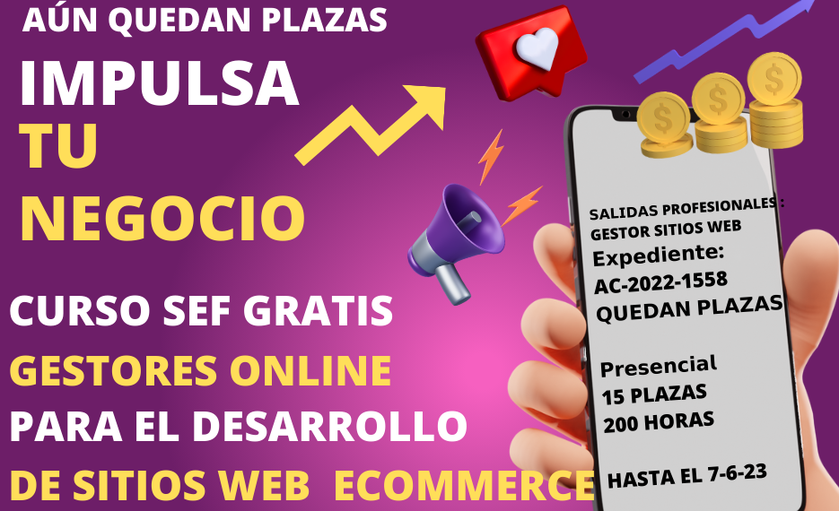 Aula Nova, tu centro de formación en La Unión, te propone el curso gratuito SEF: Gestores online para el desarrollo de sitios web y e-commerce. Doscientas horas de clases presenciales. Todavía quedan plazas para este curso con muchas salidas a nivel profesional. Comienza a prepararte para el futuro y aporta un valor añadido a tu currículum desde ahora.