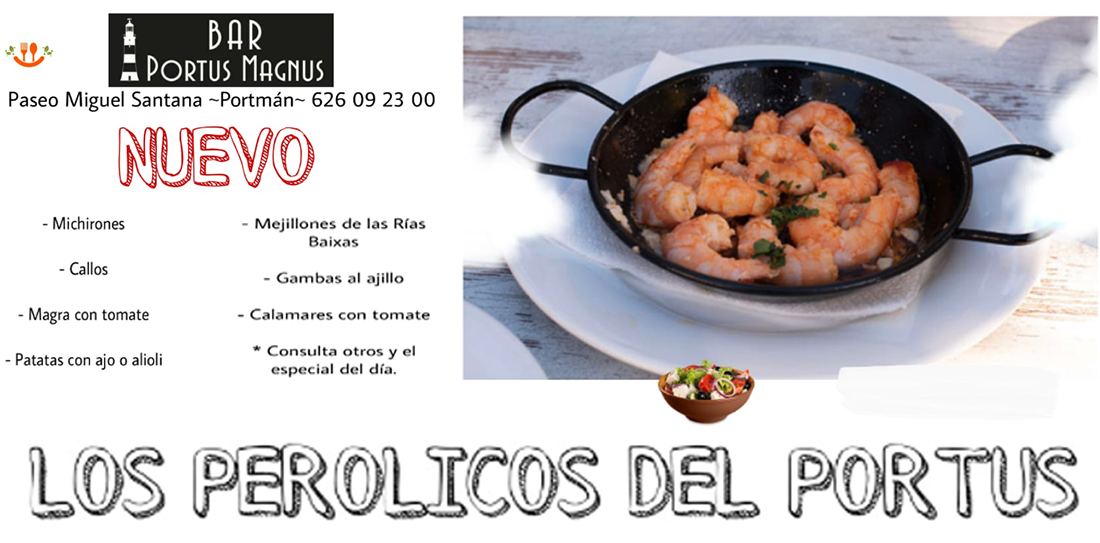 Es una propuesta nueva en la que Bar Portus Magnus lleva trabajando desde hace un tiempo y que este fin de semana se estrenarán. Michirones, callos, magra contomate, patatas con ajo, mejillones, gambas al ajillo, calamares con tomate, etc. Cada día habrá una especial. Ven a tu bar de encuentro ubicado en el paseo de Miguel Santana de Portmán y disfruta de tomas las tapas de una forma diferentes. Tenemos más novedades de las que próximamente informaremos...